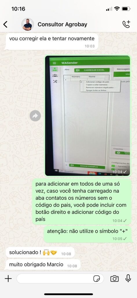 Após o disparo das mensagens você receberá um relatório informando os contatos que receberam.